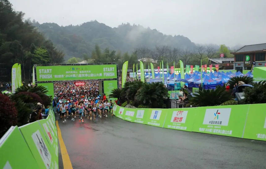 运动员在世界自然遗产地梵净山景区参加2026第八届梵净山登山大赛。李鹤摄
